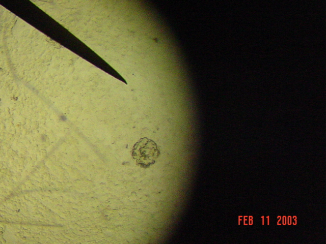 one of the easiest parasites to see. It may appear round or oval and will