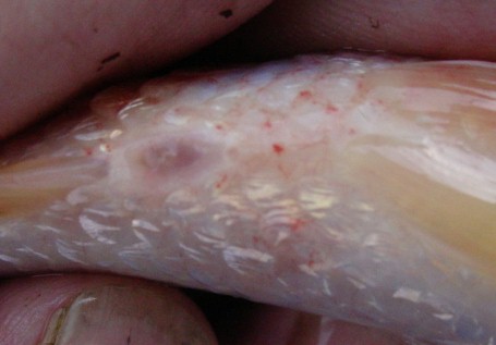 this case I was able to readily see it on the white under belly of this fish.